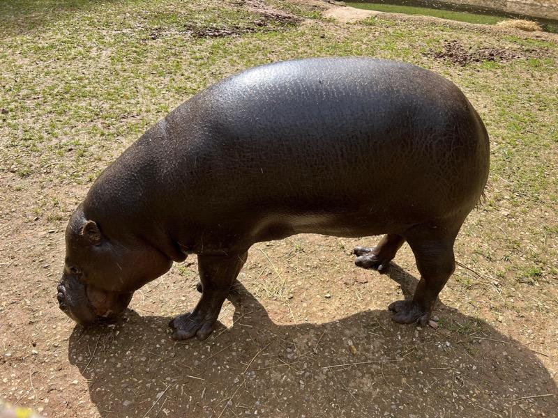Fueron introducidos en zoológicos a comienzos del siglo XX, donde se reproducen con éxito y donde se lleva a cabo gran parte de la investigación sobre estos animales. La longevidad de los ejemplares en cautividad oscila entre los 30 y los 55 años, una esperanza de vida muy improbable en libertad.El pigmeo mide la mitad del hipopótamo común, llegando a alcanzar los 80 centímetros de altura y de 160 a 280 kilos. De aspecto muy similar a su hermano mayor, son animales semiacuáticos y nocturnos y se alimentan de plantas y frutos. El periodo de gestación de esta especie es de unos 7 meses. No forman grupos, sino que se desplazan por las selvas aislados o en parejas.