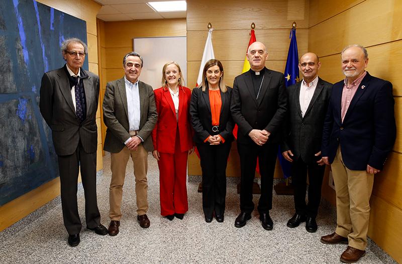 Buruaga, junto con la consejera de Presidencia, Isabel Urrutia, ha recibido en la sede del Ejecutivo cántabro a representantes de las instituciones que han impulsado la concesión de este título a Carlos Osoro: Arturo Ros, obispo de Santander; Manuel Ángel Castañeda, presidente del Ateneo de Santander; Ildefonso Calderón, responsable de la Asociación Amigos de Torrelavega; José Nicasio Gutiérrez, presidente de la Coral de Torrelavega, y Tomás Castillo, en nombre de la Sociedad Cántabra de Escritores.
