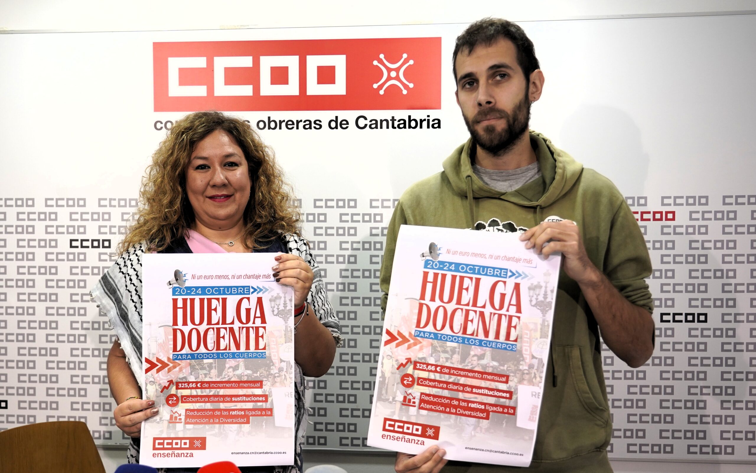 “Damos un golpe encima de la mesa y queremos la cifra de 325 euros porque el problema no es que no haya dinero disponible sino que se está destinando a otras partidas que no llegan ni siquiera a ejecutarse. Estamos perdiendo dinero a diario y solo desde el encierro de noviembre de 2024 se nos ha dejado de pagar más de 4.500 euros por docente”, ha apuntado Conchi Sánchez, secretaria general de la Federación de Enseñanza de CCOO en Cantabria, que ha estado acompañada en la rueda de prensa por Alberto López, secretario de Organización y Acción Sindical de la Federación de Enseñanza de CCOO en Cantabria.