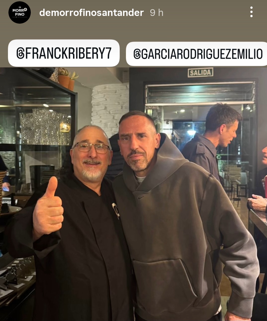Las primeras informaciones comenzaron a circular en redes sociales a lo largo del día, donde varios usuarios apuntaban a haber visto al exjugador francés en la ciudad. Poco después, aparecieron imágenes suyas en el gimnasio de los Agustinos, lo que dio veracidad a los comentarios iniciales.Ya por la noche, distintas fuentes confirmaron que Ribéry cenó en el restaurante De Morro Fino, donde fue reconocido por algunos clientes y se fotografío con uno de la propietarios.