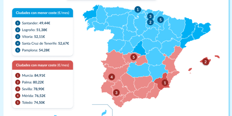 De 84,91 € a 49,44 €: así varía el consumo según la ciudad