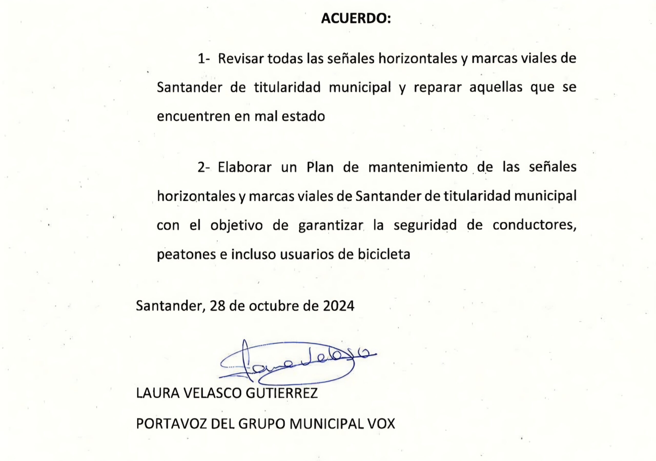El documento de Vox, firmado por Laura Velasco, alertaba del grave deterioro de la señalización en Santander y recogía incluso un informe de la Federación Cántabra de Asociaciones de Vecinos (FECAV), que calificaba el estado de muchas señales como “un riesgo para la seguridad vial”.