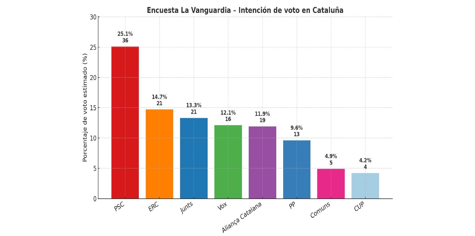 La última encuesta publicada por La Vanguardia refleja un vuelco político en Cataluña, donde Vox y Aliança Catalana irrumpen con fuerza y comienzan a marcar el paso en la reconfiguración del Parlament.